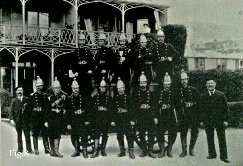 Cowes Fire Brigade, photographed in celebration of their Battenburg Cup victory (Fig.6). The cup itself appears in the centre in the hands of Captain Ernest Willsteed.