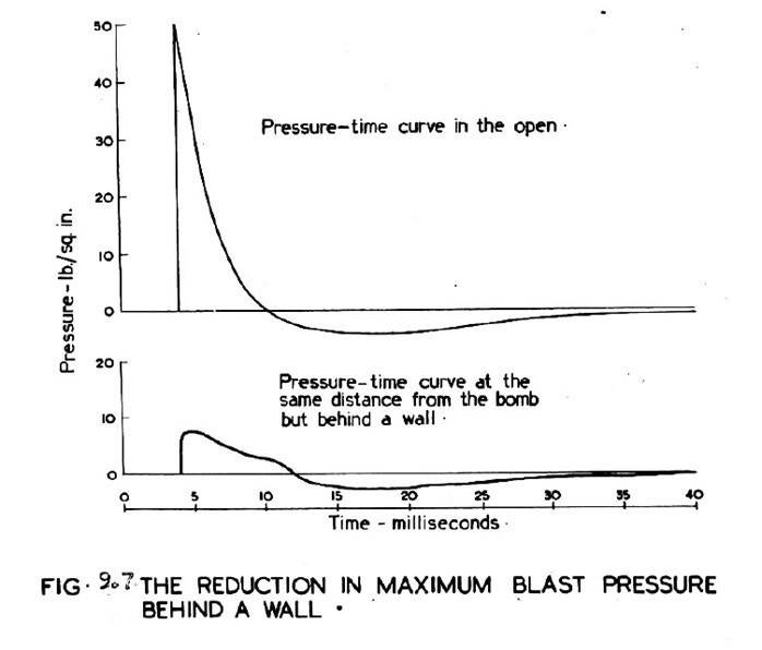 Chapter 9 of the history of R&E, ‘Physics of Explosions’ provides a substantial explanation of the factors of exploding bombs and how they were studied in both theory and practice. Acknowledging that an ounce of TNT contains roughly the same energy as the same mass of coal, and that the only difference is the rate at which the energy is released, Astbury describes the practical and theoretical analysis undertaken to understand the effect of blast, shock-wave (positive and negative), and earth-shock.