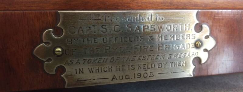 In the following year, for no other reason than to mark their respect, Ryde’s firemen presented Sidney with a clock bearing an inscription that needs no further description (shown below).
