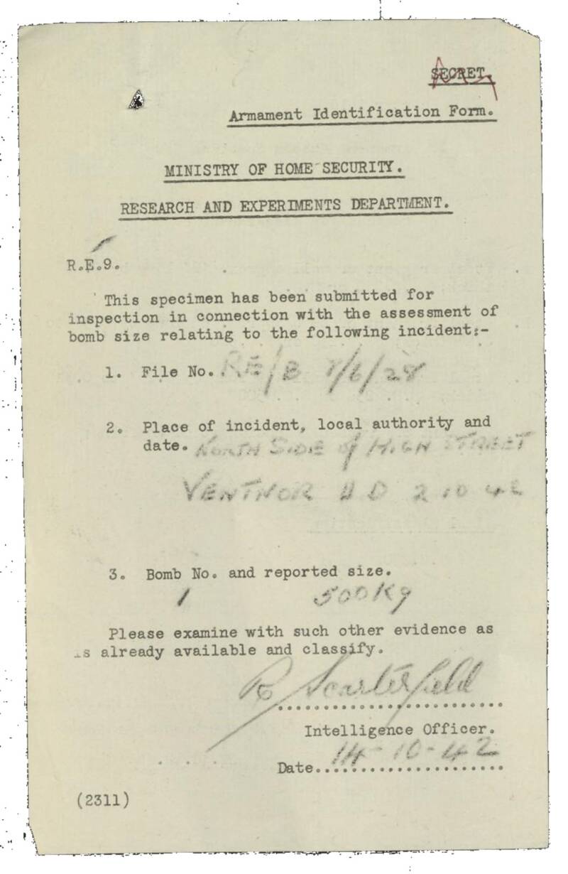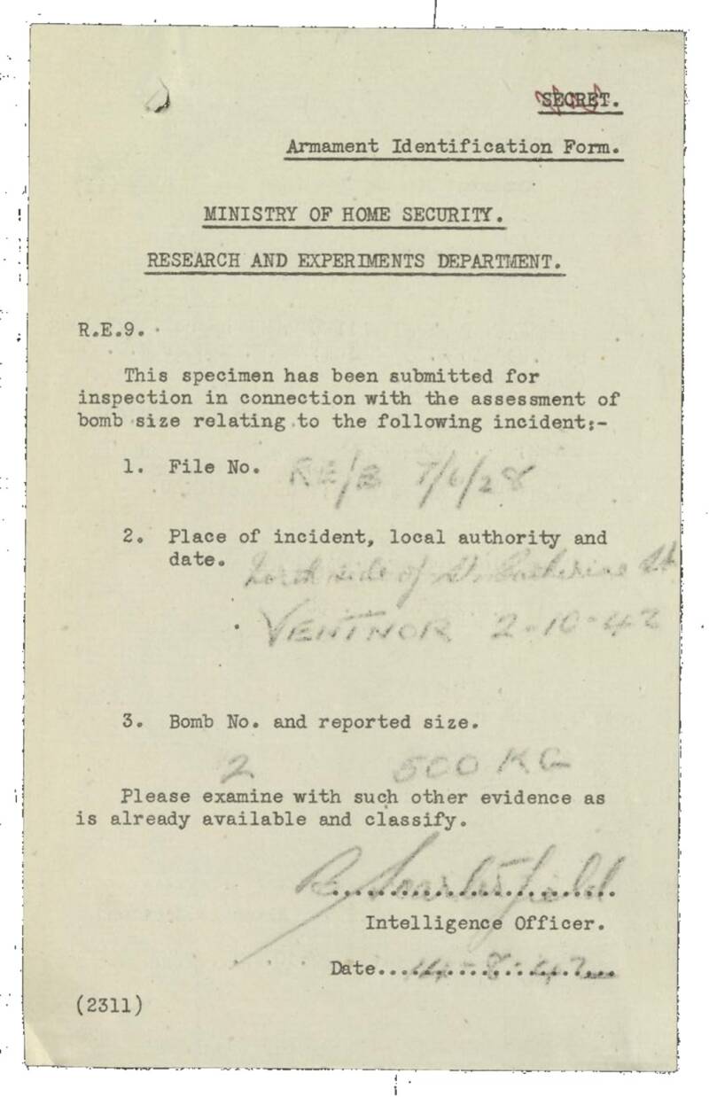 However, a person of indecipherable name, in the role of Regional Technical Intelligence Officer at R&E, did find the time to pop across the Solent and take a look. Written for the attention of one Mr Scarterfield at the Ministry of Home Security his brief report refers to the raid in question, in context with the two previous raids.